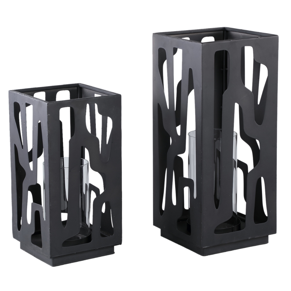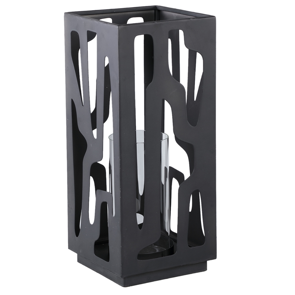 Le photophore PTMD Dewey noir est une piece decorative elegante avec cadre en metal decoupe et verre interieur. Son design unique cree un jeu d ombres raffine a la lumiere de la bougie. Parfait pour apporter chaleur et modernite a votre interieur.