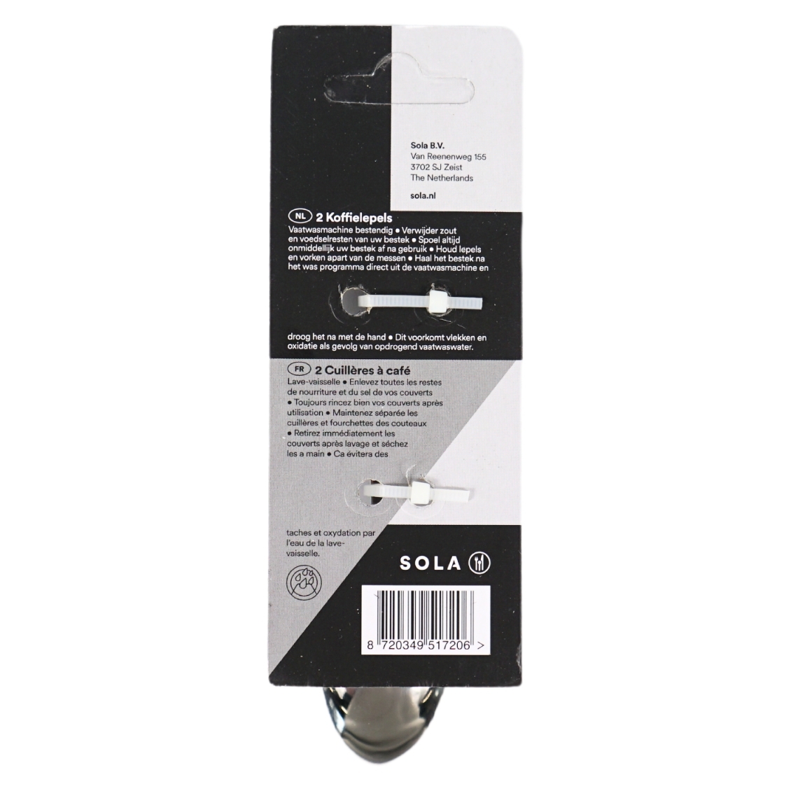 Set van 2 koffielepels van het merk Sola, uit de Amstel-serie. Gemaakt van roestvrij staal (RVS). Afmetingen per lepel: 13 x 2,7 x 2 cm.