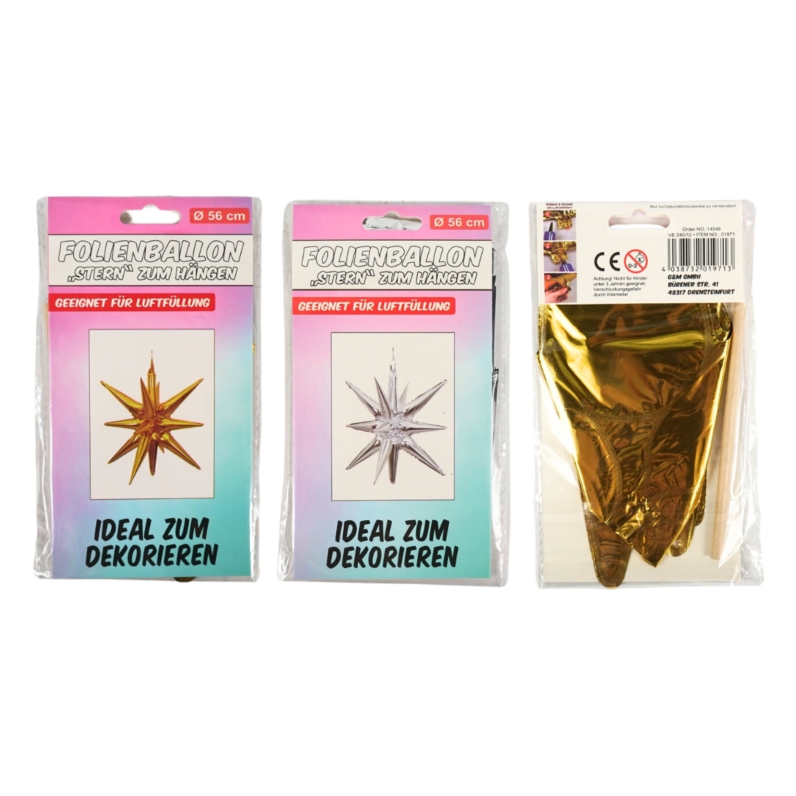 Folieballon ster 56 cm 2 assorti