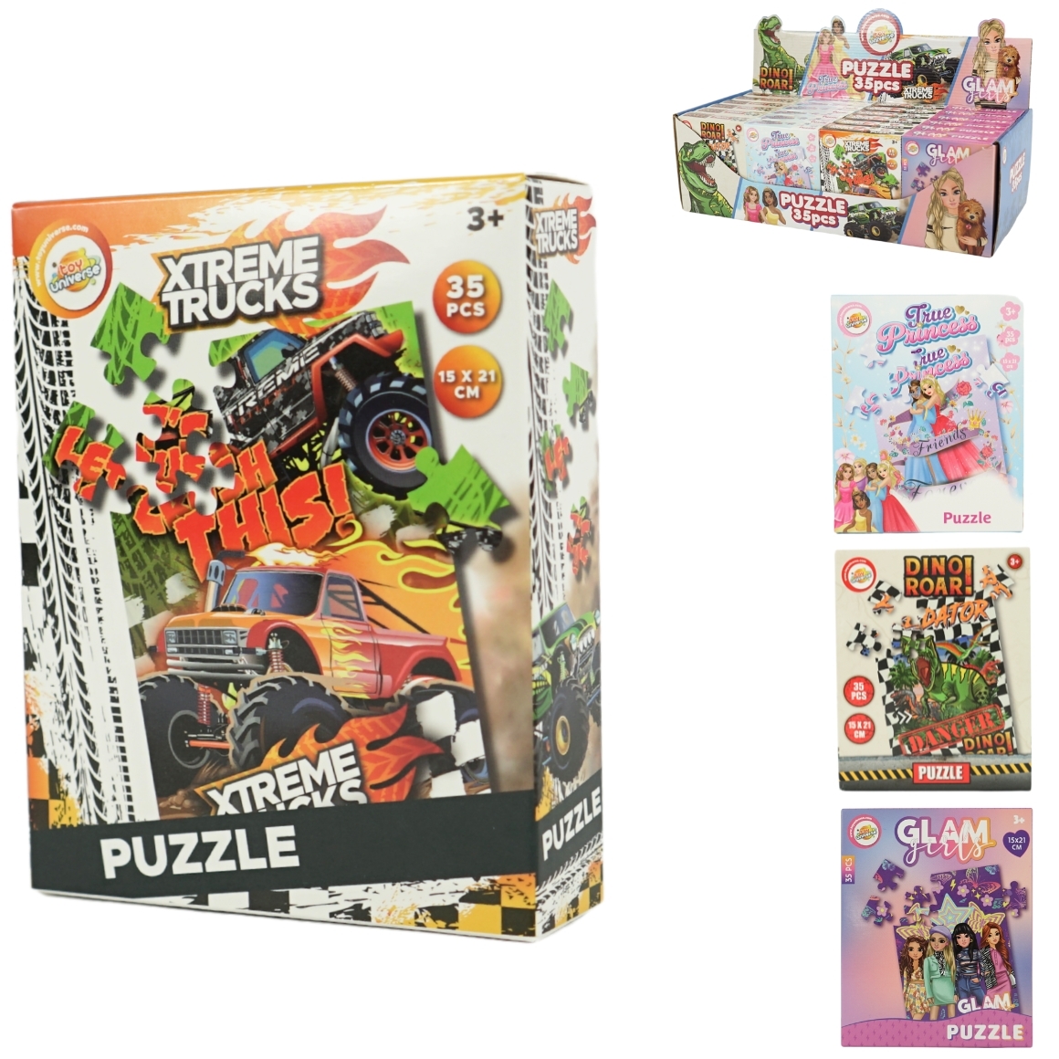 Artikel wordt assorti geleverd, de prijs is per stuk. Deze puzzel van 15 x 21 cm bestaat uit 35 stukjes en is ideaal voor jonge puzzelliefhebbers. Verkrijgbaar in vier verschillende thema’s met kleurrijke en speelse ontwerpen. Niet geschikt voor kinderen van 3 jaar of jonger.