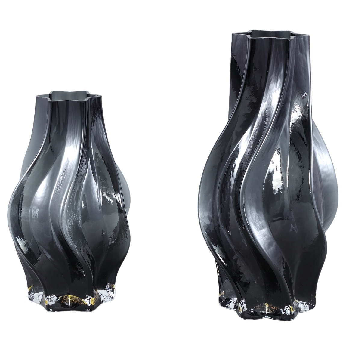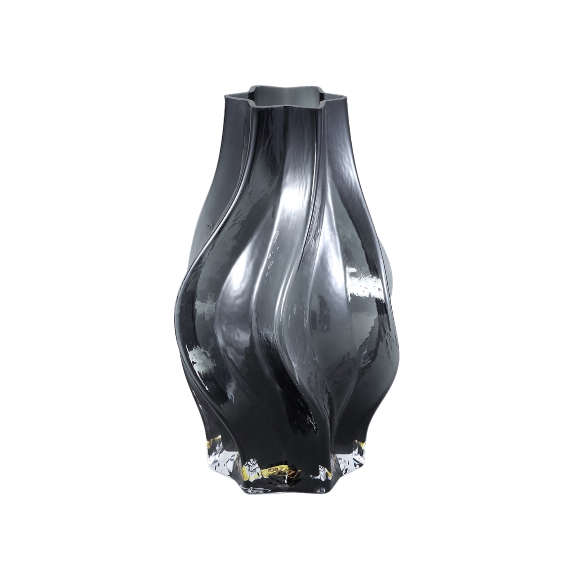 Stijlvolle PMTD Vaas Florence in glas met gebogen lijnen. Het elegante, organische ontwerp geeft de vaas een verfijnde uitstraling en maakt het ideaal voor het presenteren van bloemen of als decoratief object in elke ruimte.