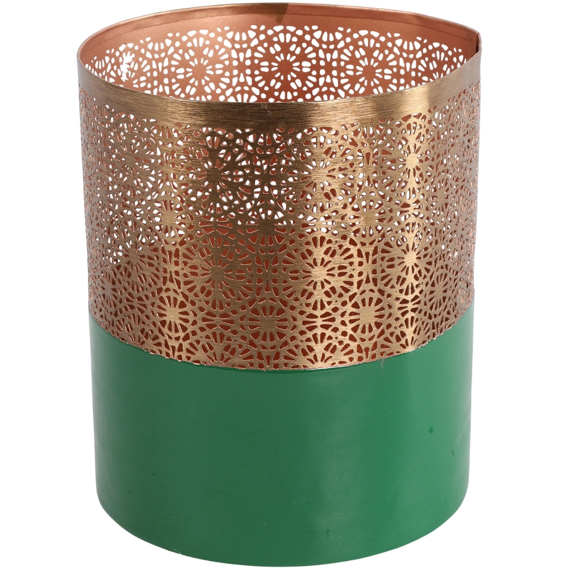Countryfield theelichthouder Mathilde groen/koperkleurig 15 cm