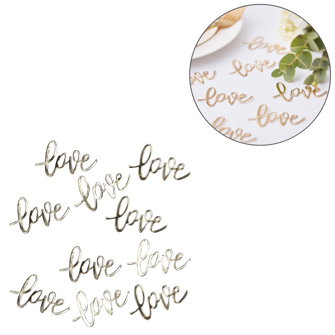 Deze goudkleurige confetti van Ginger Ray vormt het woord LOVE en past perfect binnen de Gold Wedding collectie. De verpakking bevat 14 gram aan decoratieve letters, ideaal om over tafels te strooien als stijlvolle versiering. Deze tafeldecoratie is geschikt voor diverse romantische gelegenheden zoals een bruiloft of Valentijnsdag en voegt een feestelijk accent toe aan elk moment.