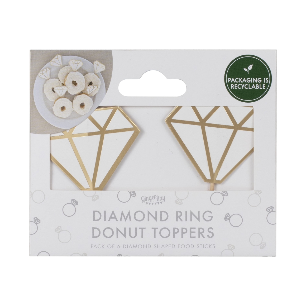 Deze feestelijke cocktailprikkers van Ginger Ray maken elke traktatie een eyecatcher. De prikkers zijn voorzien van een grote diamanten ring, perfect passend bij een verlovingsfeest, bruiloft of ander bijzonder moment. Ideaal voor het presenteren van hapjes of kleine traktaties. De prikkers zijn foodsafe en worden geleverd in een set van 6 stuks, verpakt in een mooie verpakking uit de engagement collectie van Ginger Ray.