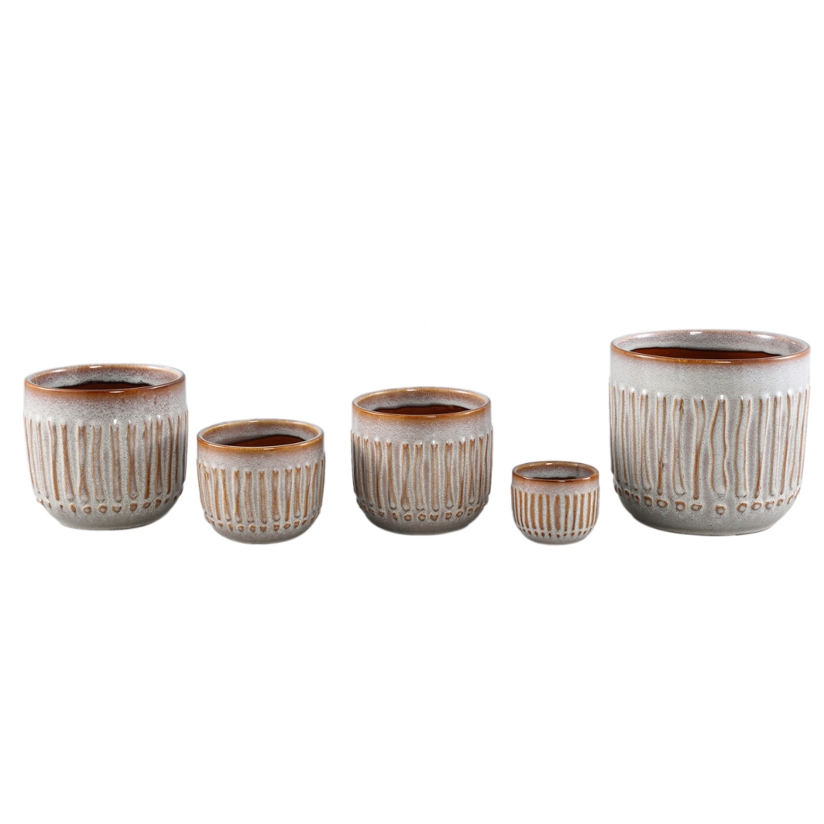 Keramieken bloempot uit de Ruuby-serie van PTMD. Voorzien van een decoratief reliëfpatroon en afgewerkt in warme aardetinten. Geschikt voor diverse interieurstijlen.