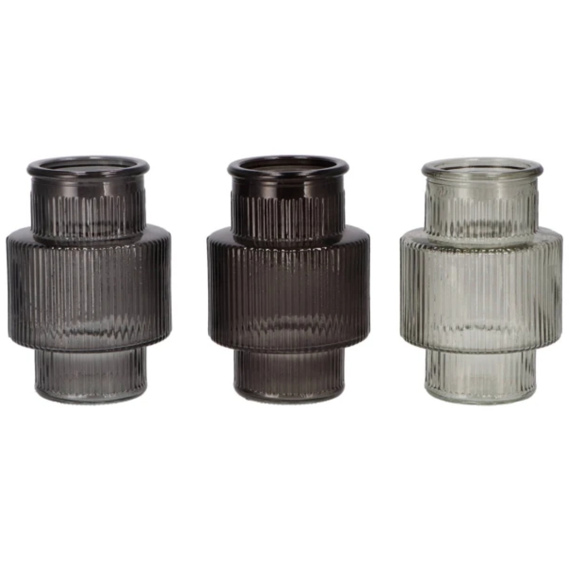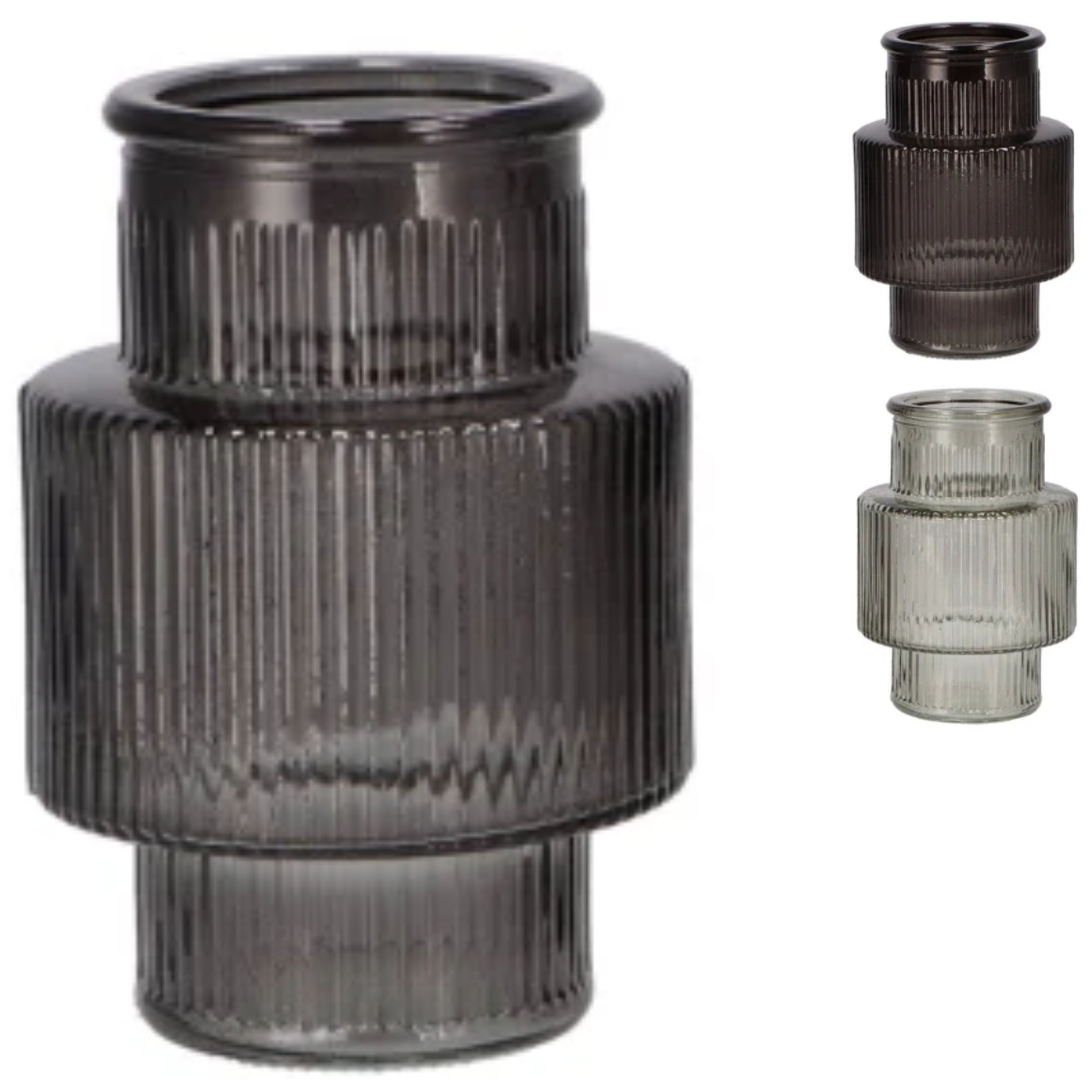 Artikel wordt assorti geleverd, de prijs is per stuk. Deze glazen vaas Karakum in grijze tinten heeft een moderne ribbelstructuur en een hoogte van 21 cm. Geschikt voor het presenteren van bloemen of decoratieve takken. Het tijdloze ontwerp past in diverse interieurstijlen en geeft een stijlvolle uitstraling.