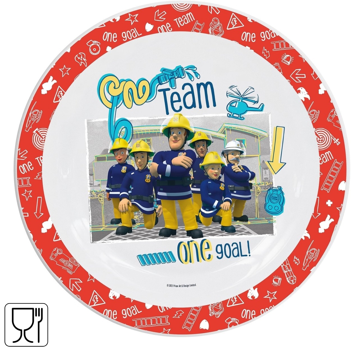 Dinerbord met Brandweerman Sam en zijn team, ideaal voor kinderen. Het bord is gemaakt van kunststof, breukvast, BPA- en ftalaatvrij en gemakkelijk schoon te maken. Met een diameter van ca. 21 cm is het geschikt voor maaltijden en snacks. Geschikt voor vaatwasser en magnetron.