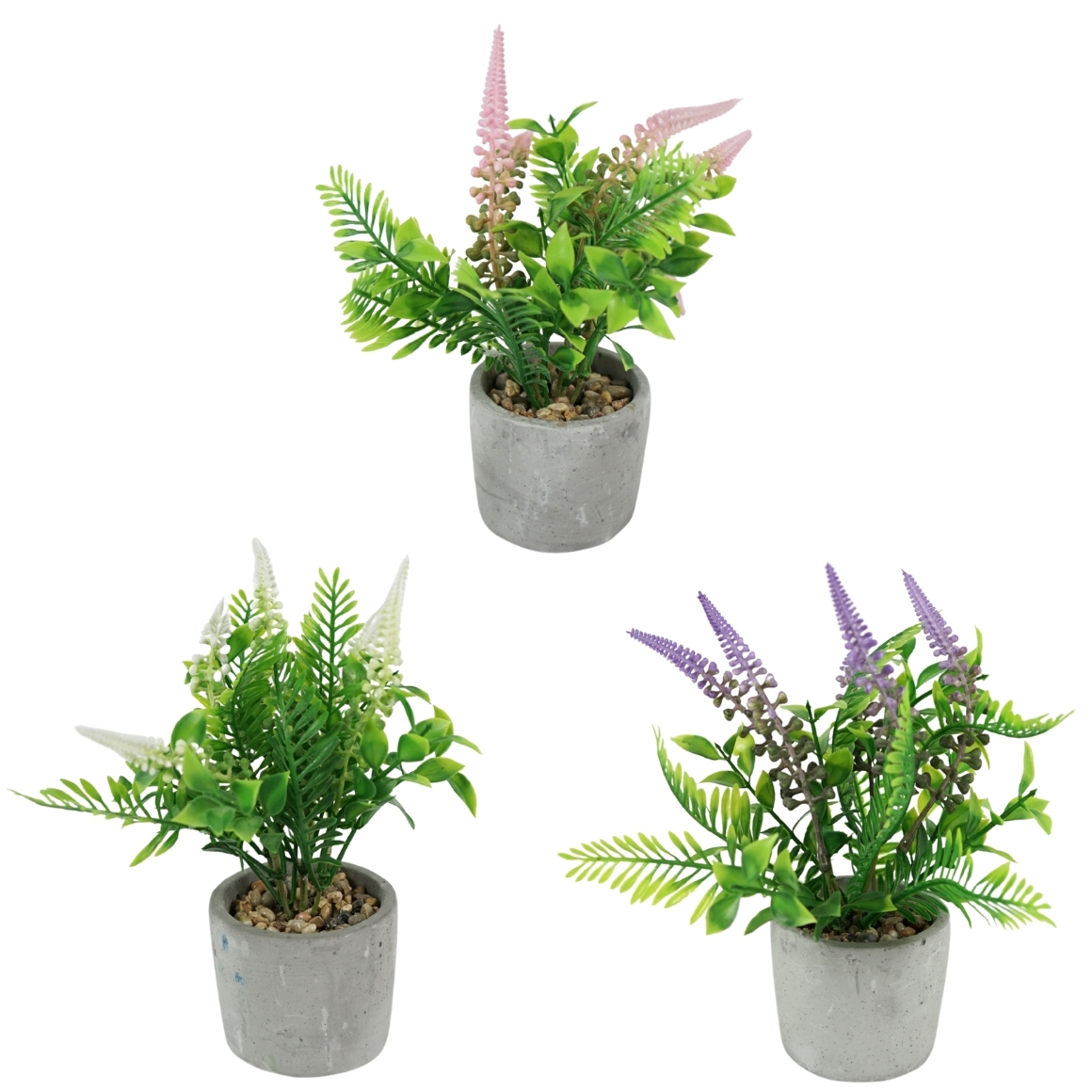 Kunstplant lavendel in cementen pot 22 cm 3 assorti