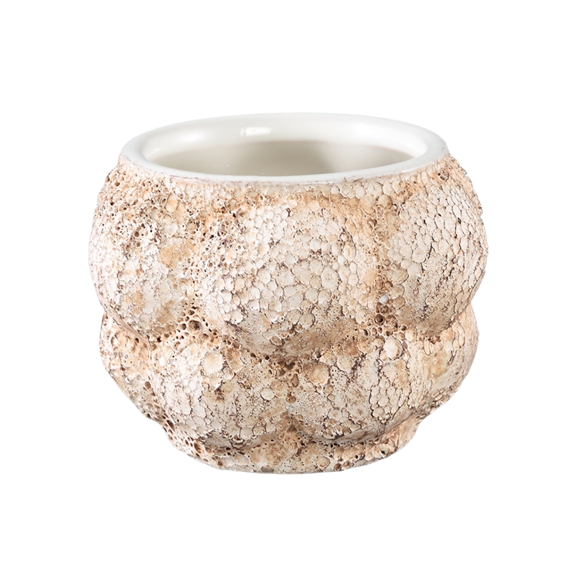 De Fareeda bloempot van PTMD is een compacte keramische pot met opvallend reliëf. Ideaal voor kleine planten of vetplanten en een stijlvolle toevoeging aan elk interieur.