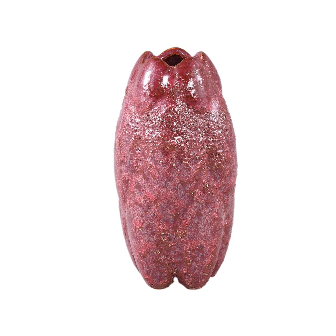 Decoratieve vaas uit de PTMD Varun serie, uitgevoerd in roze keramiek met een glanzend reactief glazuur. Het speelse bloemvormige design geeft een artistiek accent aan ieder interieur. Hoogte 15 cm, geschikt voor droogbloemen of als sierobject.