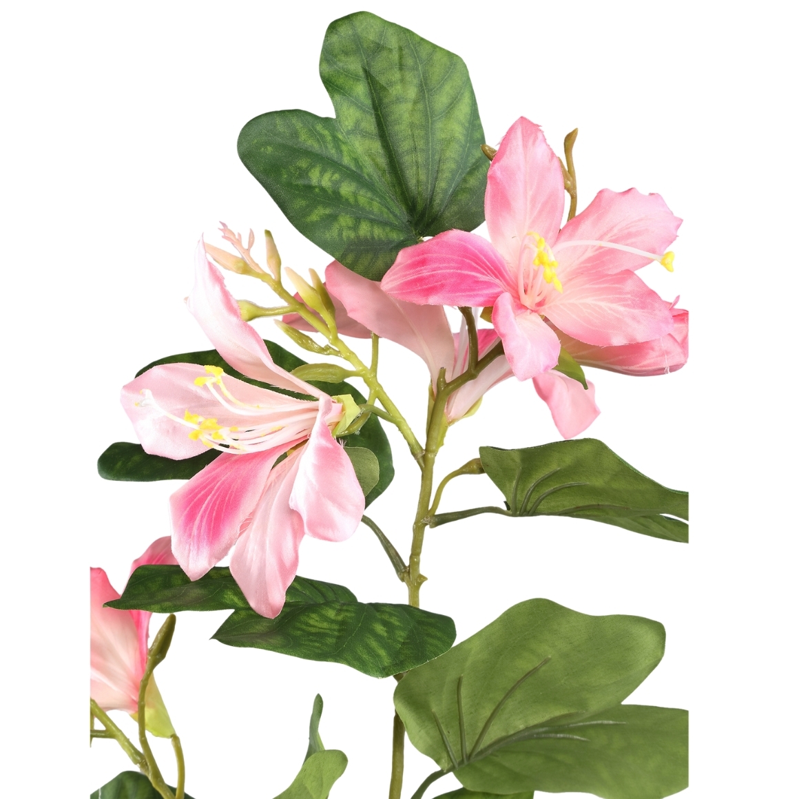 Kunstbloem van PTMD met elegante roze Bauhinia-bloemen en frisgroene bladeren. Met een lengte van circa 85 cm is deze bloem perfect om los in een vaas te plaatsen of te combineren in een prachtig bloemstuk.
