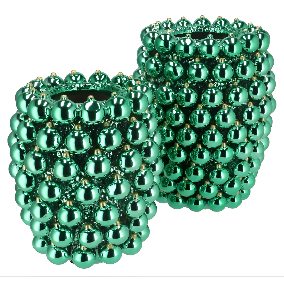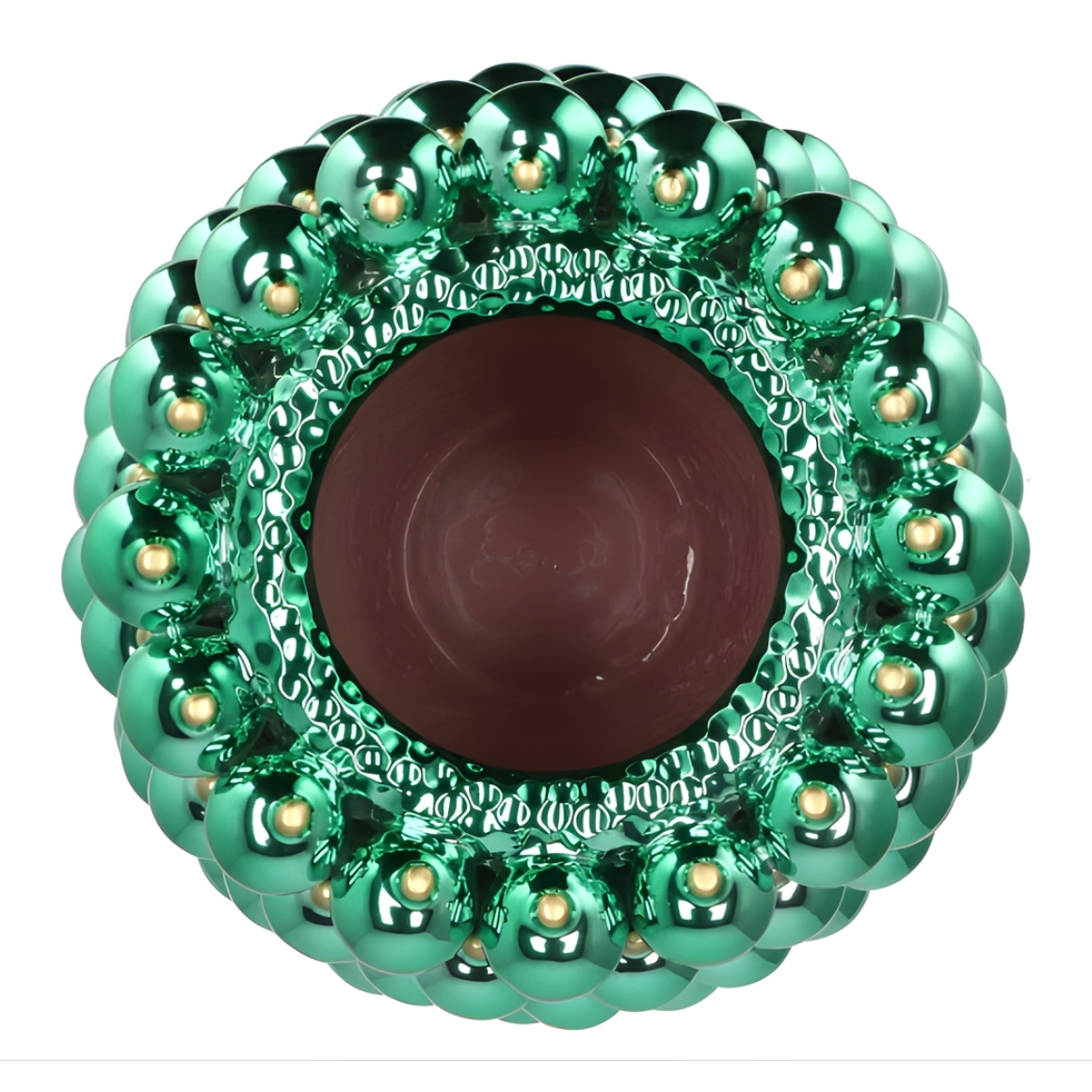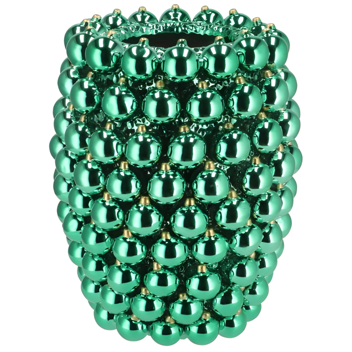Glanzende keramische vaas in de vorm van kerstballen uit de Christmasball-serie van Daan Kromhout. De opvallende structuur van glinsterende bollen maakt dit item tot een echte blikvanger in de kerstversiering. Perfect voor bloemen, takken of als los decoratief statement.