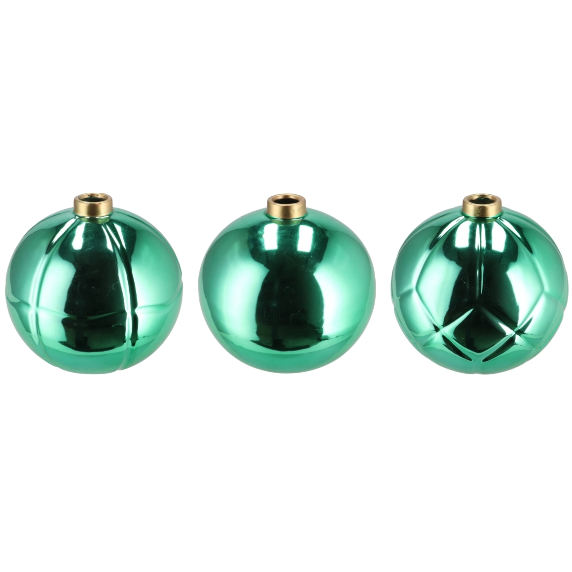 Artikel wordt assorti geleverd, de prijs is per stuk. Set van drie glanzende vazen in de vorm van kerstballen uit de Christmasball-serie van Daan Kromhout. Elke vaas heeft een unieke structuur en glinsterende afwerking die perfect past bij de kerstversiering. Ideaal als feestelijk decoratief statement.