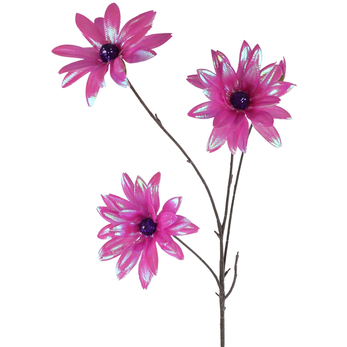 Kunstbloem Dahlia in paars met een lengte van 86 cm. De bloem heeft glanzende bloembladen met een subtiel iriserend effect, waardoor ze een blikvanger vormt in elke vaas of bloemstuk. Onderhoudsvrij en altijd mooi, geen water of verzorging nodig.