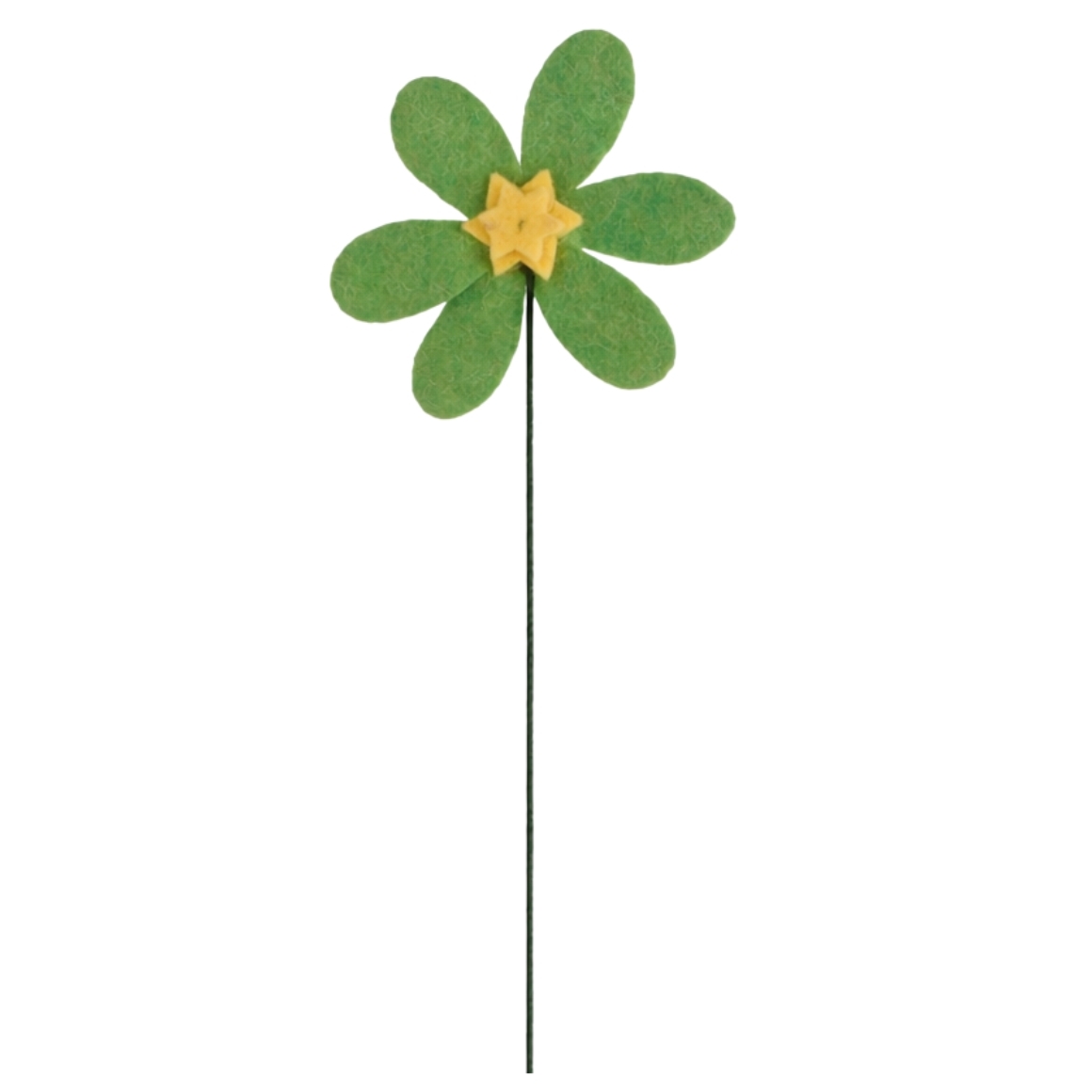 Artikel wordt assorti geleverd; de prijs is per stuk. Kunstbloem van vilt in groen en wit met een lengte van 33 cm. Deze speelse bloem op steel voegt een frisse en vrolijke toets toe aan elk interieur en blijft dankzij het viltmateriaal altijd mooi zonder verzorging.