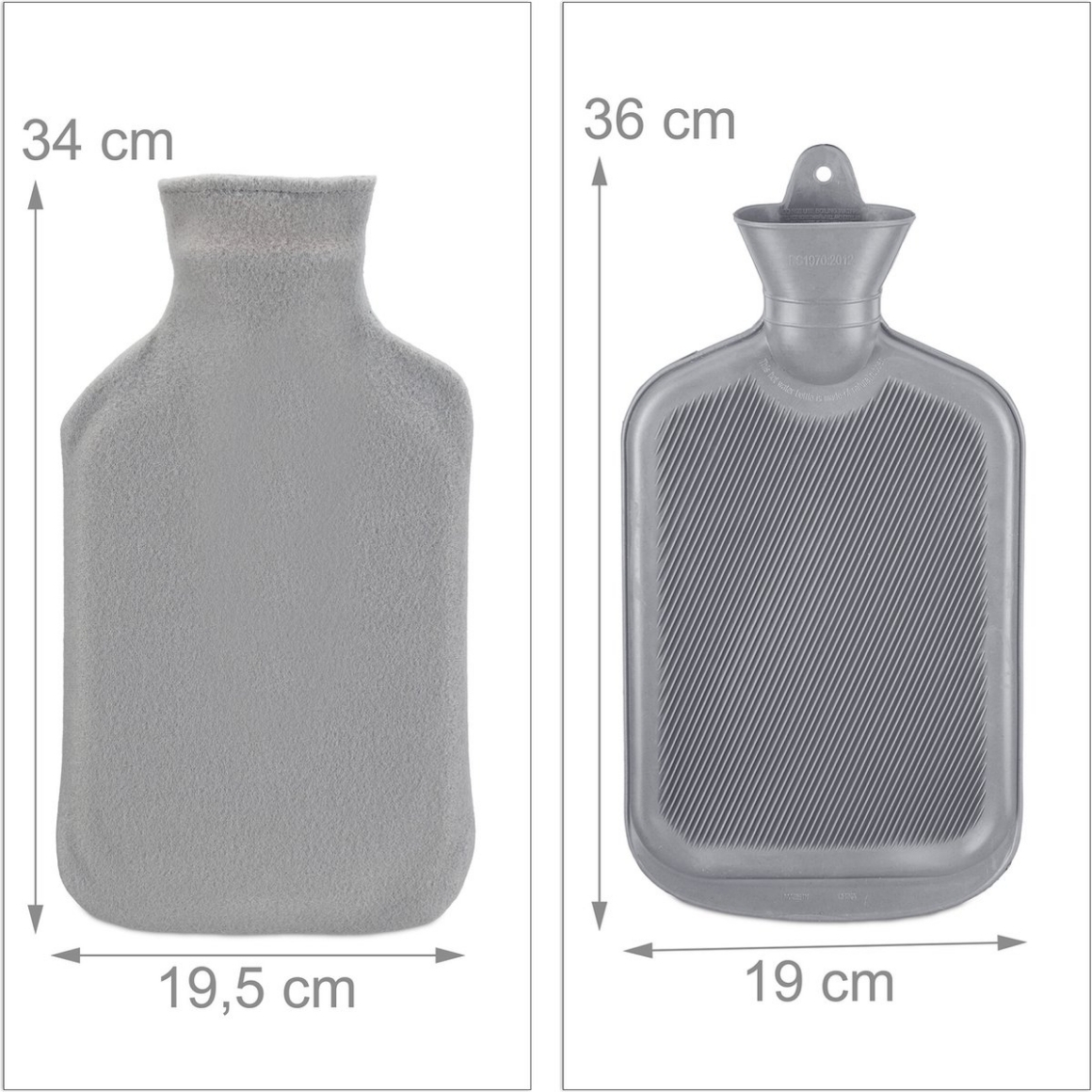 Deze warmwater kruik met hoes van Relaxdays is geschikt voor het geven van comfortabele warmte bij kou, buik-, rug- of spierpijn. Het klassieke model is gemaakt van rubber en wordt geleverd met een zachte grijze fleece hoes voor prettig contact met de huid. De kruik heeft een inhoud van 2 liter en een draaidop voor veilig vullen. Niet vullen met kokend water.