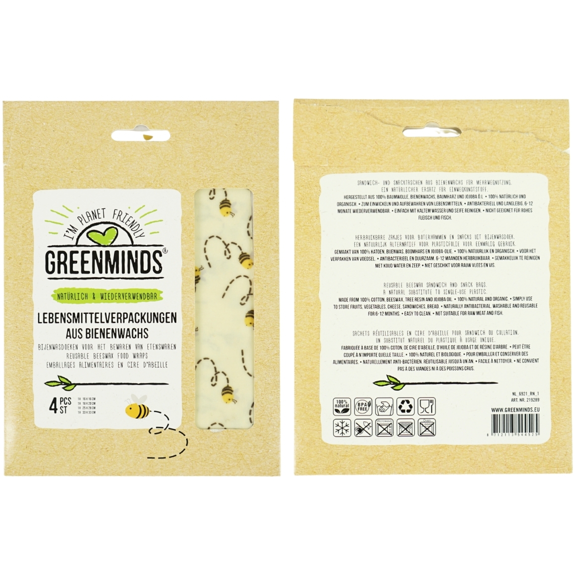 Greenminds bijenwas folie 33 cm set van 4