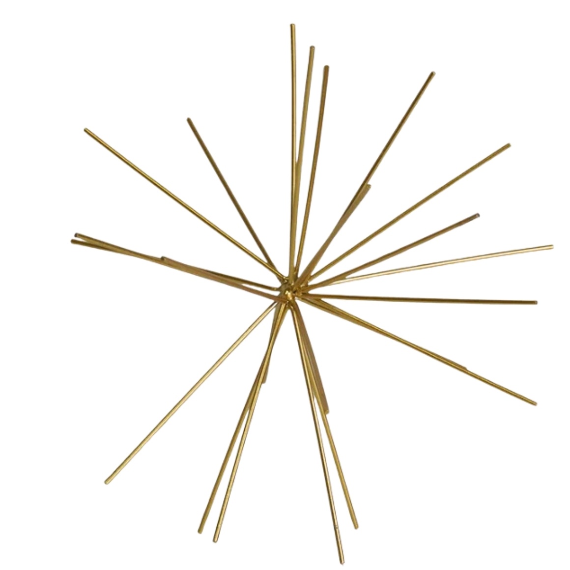 Een modern metalen ornament uit de Firework serie. Dit decoratieve element heeft een dynamische vorm en is zowel neer te zetten als op te hangen, exclusief lusje. Het ontwerp past goed bij feestelijke en artistieke interieurs en geeft elke ruimte een modern accent.
